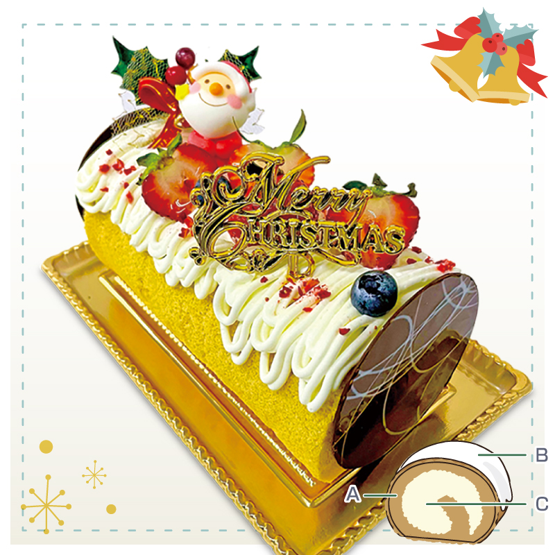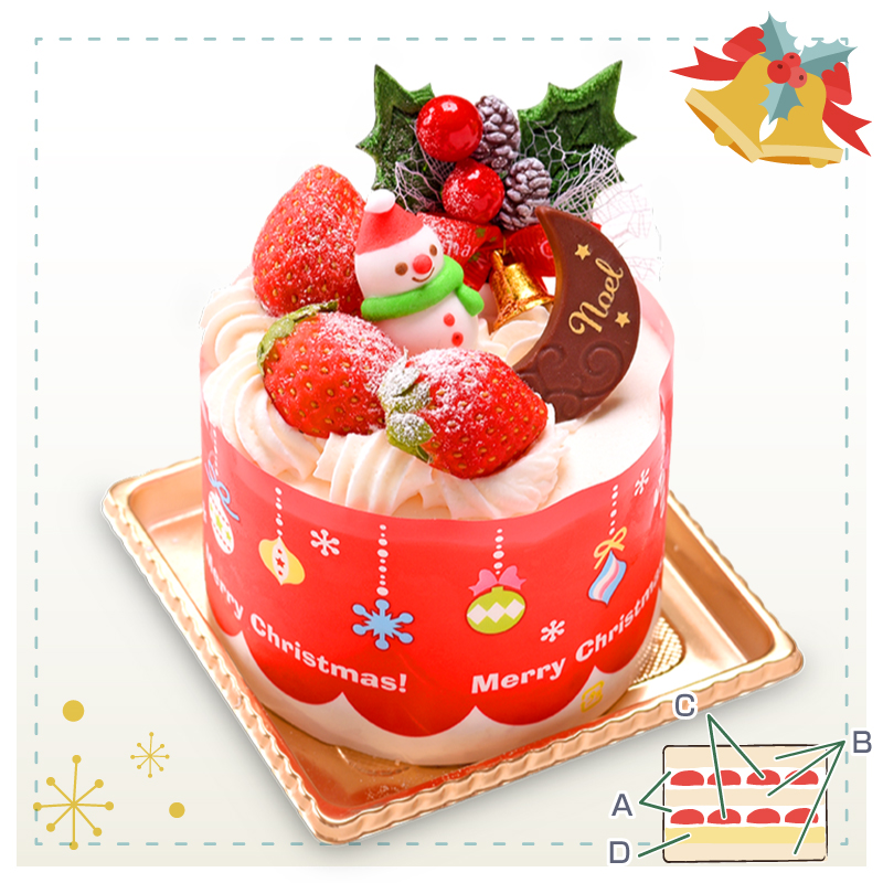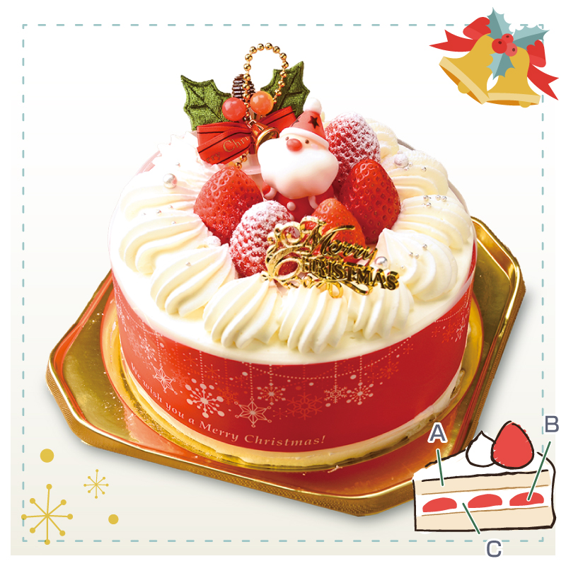 A:ジェノワーズ(スポンジ生地)B:苺C:生クリーム
