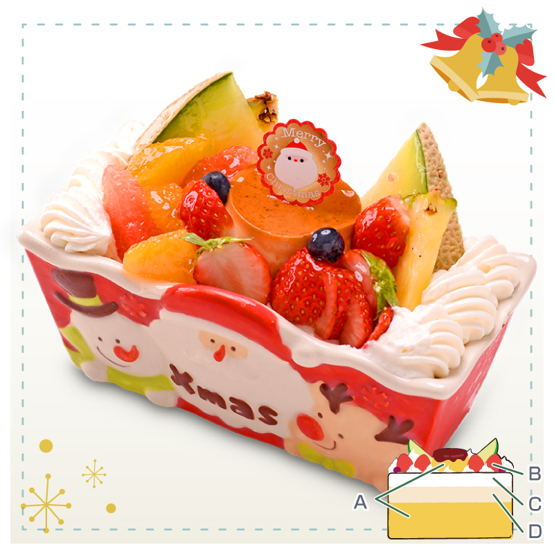 プリン / 生クリーム / チョコクリーム / カスタードクリーム / スポンジ / フルーツ
